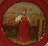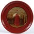 A FINE RUSSIAN LACQUER PLATE, LUKUTIN, 19TH CENTURY. The cavetto finely painted with a Boyarin on a lustre ground with red borders. Verso with Lukutin mark beneath Imperial Warrants. Diameter 8.3 inches (21.2 cm).