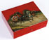 A LARGE RUSSIAN LACQUER BOX, VISHNIAKOV, 19TH CENTURY. The hinged lid finely painted with a summer troika scene on a lustre ground, atop a red lacquered body, and similarly lacquered interior, and with operating lockable latch (with key). The interior with Vishniakov mark. Length 11.6 inches (29.5 cm), width 9.25 inches (23.6 cm), height 3.25 inches (8.3 cm).