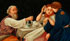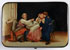A RUSSIAN LACQUER JEWELRY BOX, VISHNIAKOV, 19TH CENTURY. The hinged lid with thumb push clasp, painted with an interior scene of a father and daughter with coachman suitor. The interior in red lacquer with Vishniakov mark. Length 4.3 inches (11.1 cm), width 3 inches (7.6 cm), height 1.75 inches (4.5 cm).