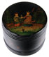 A RUSSIAN LACQUER CHINOISSERIE TEA CADDY, VISHNIAKOV, 19TH CENTURY. Of barrel form with banded sides, the fitted lid with exterior Chinese motif and the sides with faux Chinese inscriptions. Diameter 4.9 inches (12.5 cm), height 4 inches (10.2 cm).