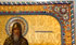 AN IMPORTANT RUSSIAN PRESENTATION ICON OF ST. NESTOR THE CHRONICLER, MOSCOW 1896. At center a finely painted full-length image of Nestor depicted in monastic garments and holding a scroll upon which he writes his great chronicle. His habit is highlighted with gold shading and the gilded background is ornately incised with flower heads interspersed between intricate strapwork. The shoulder height Slavonic inscription identifies him as, Преподобный Нестор Летописец Печерск – The Venerable Nestor Chronicler of the Perchersk Lavra – Kiev. The borders overlaid with an ornately crafted repoussé gilded silver and enameled riza. The outside border with twist cloisonné pattern enamel and the inside with triple border of turquoise beaded enamel, light blue solid enamel and twist pattern. The corners each set with ornate enameled elements and the head of Nestor encircled by an applied gilded silver and enamel halo. The riza hallmarked Moscow, 84 silver standard, dated 1896 and with Cyrillic makers mark АЧ for Anton Chevarzin. The verso of icon covered with purple velvet and old paper label hand inscribed in Russian script, “From Metropolitan Ioaniky Kiev Lavra September 12, 1896.” Size: 10.7 inches x 9 inches (27 x 22.5 cm).