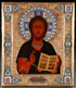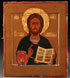 A RUSSIAN ICON OF THE LORD ALMIGHTY, 19TH CENTURY. Executed in the traditional old style, here Christ delivers a blessing with his right hand and holds an open book of gospels inscribed with the text from Matthew 11:28. The entire icon overlaid with an exquisite silver-gilt, repoussé and chased riza, with ornate cloisonné halo corner and side decorative elements, as well as a champlevé enameled title plaque affixed to the lower margin. Hallmarked Moscow, dated 1896, Cyrillic maker's mark S.Ye, most likely for Semion Yegornov. 12.25 inches x 10.5 inches (31.1 x 26.7 cm). Together with a glazed shadowbox frame (kiot), not illustrated, 15.5 inches x 13.75 inches (39.4 x 34.8 cm), depth 5 inches (12.7 cm).