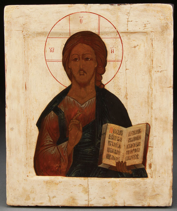A RUSSIAN ICON OF THE LORD ALMIGHTY. Following the canons of the 16th century but painted later. 12.3 inches x 10.25 inches (31.4 x 26 cm).