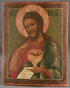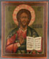 A RUSSIAN THREE PIECE DEISIS GROUPING, 18TH CENTURY. At center is Christ depicted as the Lord Almighty delivering a blessing and holding an open book of gospels to Matthew 11:28. On the left, the Mother of God turned inwards in an attitude of prayer; on the right, John the Forerunner holding a chalice with the infant Christ representing the Eucharist. Each panel measuring 18 inches x 14.6 inches (46 x 37 cm).