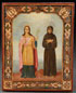 A RUSSIAN ICON OF TWO SAINTS, CIRCA 1890. On the left, a martyred princess saint, and on the right, a monastic saint (perhaps Isadore). 8.75 inches x 7 inches (22.3 x 18 cm). (Unillustrated).