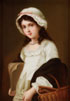 A KPM (BERLIN) STYLE HAND PAINTED PORCELAIN PLAQUE OF A YOUNG SCHOOL GIRL, LATE 19TH CENTURY. Depicting the figure dressed in white with portfolio and basket of books. Artist signed lower left "Bole". The porcelain 7 inches x 5 inches (18 x 12.5 cm). Contained in a molded frame with velour surround, 18 inches x 16 inches (46 x 41 cm).