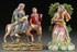 TWO STAFFORDSHIRE PEARLWARE FIGURES, EARLY 19TH CENTURY. Comprising a “Flight into Egypt” group, England, circa 1830, modeled as male and female travelers with an infant and donkey, mounted atop a freeform hollowed base, some losses and restorations. Height 10.75 inches (27.5 cm). And a figure of “Christ Teacheth Nicodemus”, circa 1820, probably by Walton, modeled sitting with his left hand raised, below a flowering bocage decorated tree raised on a hollowed mound base and holding a shield at waist impressed with the biblical reference for “John 3 Ch 3”. Some restorations to hands and bocage in tree. Height 11.25 inches (28 cm).
