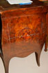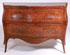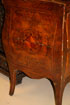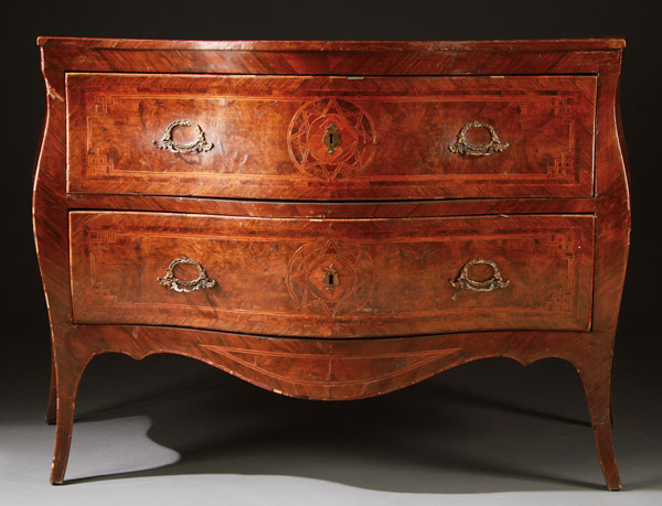 A LARGE 18TH CENTURY DUTCH MARQUETRY AND BURR-WOOD BOMBAY COMMODE. The burl wood panels centered with eight point star inlaid medallions contained in an inlaid satinwood and kingwood frame with endless knot corners, raised on saber form legs. Lot displays two round paper labels "The Arthur Liebman Collection -121". Height 38.75 inches (98.5 cm), width 57 inches (144.75 cm), depth 26.5 inches (67.5 cm).