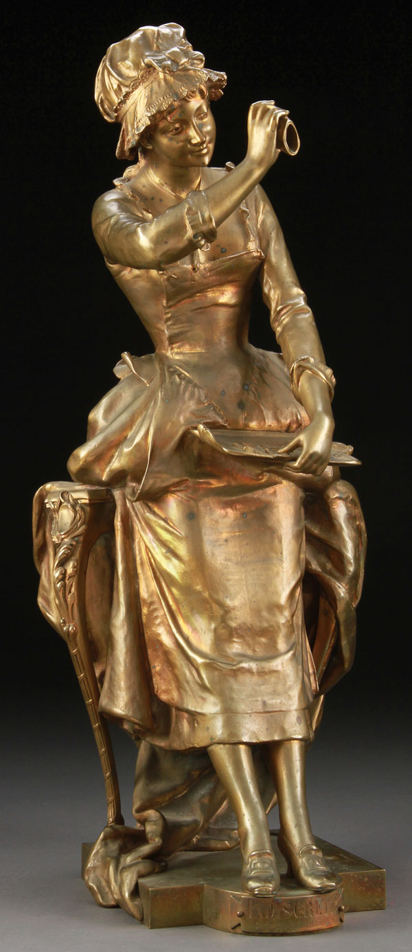 Inscribed on base "Ferrand" and title plaque "Indiscrete" and foundry mark "Slon Des Beaux Arts 1890"