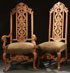 A PAIR OF FRENCH RENAISSANCE REVIVAL CARVED WALNUT CHAIRS, LATE 19TH CENTURY. With carved reticulated foliate high backs. Comprising an armchair and side chair. The largest (armchair) height 54 inches (137.5 cm).