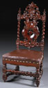 AN INTERESTING ENGLISH GOTHIC REVIVAL CARVED WALNUT DIMINUTIVE YOUTH CHAIR, CIRCA 1900. With foliate carved open work back, raised on barley twist supports and legs below a leather upholstered seat. Height 30.75 inches (78 cm), width 15 inches (38 cm), depth 12 inches (30.5 cm). (Unillustrated)