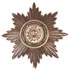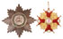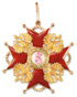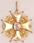 AN IMPERIAL RUSSIAN GOLD & ENAMEL CROSS, AND SILVER & ENAMEL STAR OF THE ORDER OF ST. STANISLAS 1ST CLASS, EDUARD, ST. PETERSBURG, 1899-1907. Verso of the silver-gilt and enameled breast star with large folding flat pin, hallmarked St. Petersburg, 1899-1907, and 84 silver standard, also stamped in Cyrillic ЗДУАРД (EDUARD). At center a raised enameled intertwined S on a white enameled field encircled by the Latin motto PRAEMIANDO INCITAT (To Reward Inspires) and further out still raised laurels on a translucent green enameled ground. The loop of the gold and enameled cross stamped 56 (14kt. gold standard) and with the St. Petersburg hallmark for 1899-1907. Verso of cross with trace maker's mark for EDUARD. Breast star 90 mm, cross 61 mm.