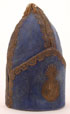 AN EXTREMELY RARE IMPERIAL RUSSIAN HAT OF AN OFFICER IN THE DRAGOON GRENADIER REGIMENT, REIGN OF PETER THE GREAT, CIRCA 1727-1730. The “Dutch” bombardier cone shaped body of blue wool, ornately embroidered in silver and bullion thread, depicting on the front the Imperial Eagle flanked by flaming grenades, on the verso, a larger flaming grenade and with bullion edging on seams and bullion tassle finial. Height 12.5 inches (32 cm).