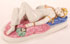 AN EARLY SOVIET PORCELAIN NUDE ODALISQUE, PORCELAIN AND FAIENCE MANUFACTORY "PROLETARIAN", BRONNITSY, 1924. Depicting a reclining nude odalisque with head scarf, heavily jeweled and with feather fan. After the original design produced at the Miklashevshii Manufactory between 1838-1861. Underside marked with Cyrillic monogram NGF for NovGubFarfor, also inscribed Volkhov, dated 1924 and signed in Cyrillic "M. Briantseva" all in black overglaze. Length 8.2 inches (21.1 cm).
