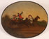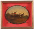 A RUSSIAN LACQUER OVAL PLAQUE, LUKUTIN, CIRCA 1890. The oval plaque finely painted with a summer troika scene depicting a young man with three young maidens in a wagon. Verso with Lukutin factory mark beneath Imperial Warrants. Mounted in a later frame. Plaque 10.4 inches x 8.5 inches (26.5 x 21.5 cm).