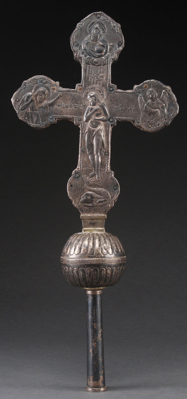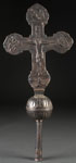 A SILVER PROCESSIONAL CROSS, 18TH OR 19TH CENTURY, POSSIBLY ARMENIAN. Apparently unmarked. Height 18.25 inches (46.5 cm).