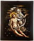 A NEOGOTHIC STAINED GLASS PANEL, ERNST RINDERSPACHER (SWISS 1879-1949). Depicting the Lamentation, circa 1930. Signed (etched) into glass with artist's name. 11.75 inches x 9.25 inches (30 x 23.5 cm). Contained in an ebonized wood frame.