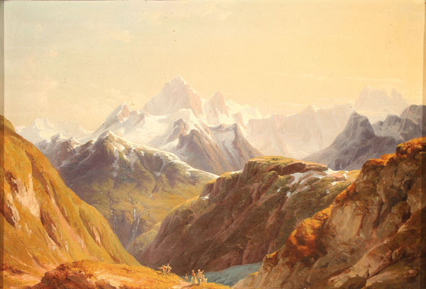 View of the Finsteraarhorn Range with Travelers in the Foreground