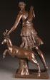 A LARGE AND IMPRESSIVE 19TH CENTURY PATINATED BRONZE SCULPTURE OF "DIANA OF VERSAILLES," AFTER THE ANTIQUE. Bronze with dark brown patina, Barbedienne Edition and with reduction stamp. Height 23.6 inches (60 cm).