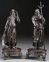A PAIR OF JAPANESE BRONZE WARRIOR FIGURES, MEIJI PERIOD. Of Quang Gon and Zhang Fei. Each in period dress with weapons, raised on three-footed oval bases, nice dark patina. Largest height 13.5 inches (34 cm).