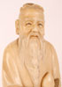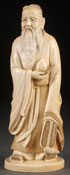 A FINE JAPANESE CARVED IVORY OKIMONO, MEIJI PERIOD. Of a lohan with peach in right hand, the garments finely textured and with a tea stained finish. The base with inlaid red lacquer seal. Height 8.5 inches (21.5 cm).