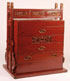 A LARGE CHINESE LACQUERED WEDDING CHEST, 19TH OR EARLY 20TH CENTURY. Comprising five stacking rectangular compartments, contained in a wooden frame with pierced carved panels and scrolled end brackets, the terminals with carved and gilt wood Buddhist lions. Height 43 inches (109 cm), width 34.75 inches (88 cm), depth 20 inches (51 cm).