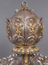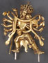 A LARGE TIBETAN SILVER AND SILVER-GILT ARTICULATING LOTUS FORM BUDDHIST SHRINE, PROBABLY 20TH CENTURY. Modeled as a lotus blossom bud, the exterior with applied gilt deities raised on a winged scrolled foliate pedestal, with eight hinged petals opening to reveal an interior mounted with eight gilt figures of Vajrayogini surrounding a central figure of the ten armed Cakrasmvara. Height 15 inches (38.5 cm).