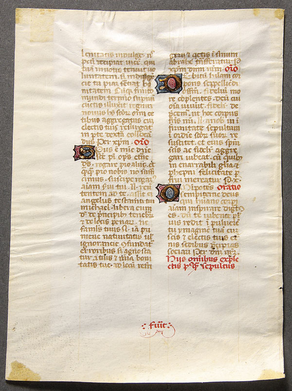ILLUMINATED MANUSCRIPT LEAF, a French Breviary hand illuminated manuscript page (both sides), French circa 1475, on vellum(?) 5.5 inches x 4 inches (14 x 10.2 cm).