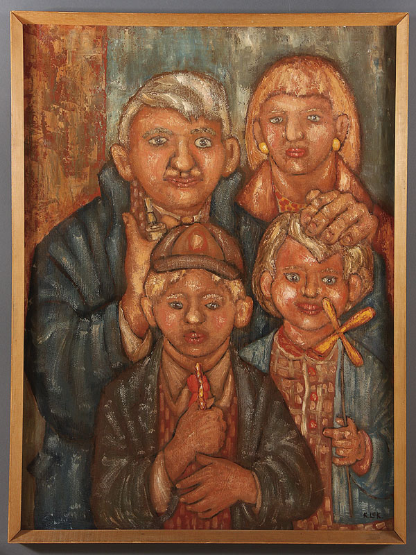 MODERNIST OIL PAINTING, Karel Lek (b. 1929- ), Family, Oil on masonite. 43 inches x 32 inches