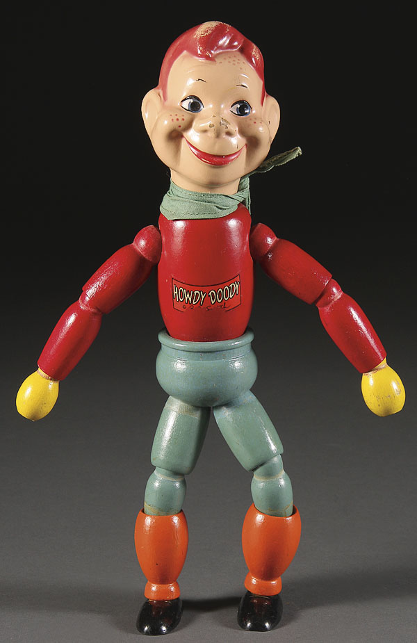 A VERY FINE WOOD JOINTED HOWDY DOODY FIGURE, MID 20TH CENTURY, polychrome, in very good condition. Height 12 inches.