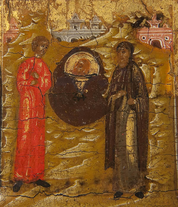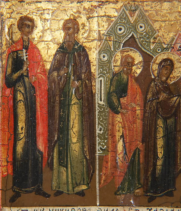 A RUSSIAN ICON FOR THE MONTH OF FEBRUARY, CENTRAL RUSSIA, CIRCA 1800. This icon illustrates all the saints and events celebrated on the church calendar for the month of February. It is read from left to right, top to bottom. The upper left corner then begins with February 1st and illustrates The Holy Martyr Tryphon and Peter of Galateia. The next image (February 2nd) is The Meeting In the Temple. Each subsequent day is represented and each scene or figure is identified by a corresponding inscription including, The First and Second Finding of the Venerable Head of the Holy and Glorious Prophet John the Forerunner (February 24th) lower left. Such icons were often displayed at the entrance area within chapels so as to reflect the current liturgical month. As such they were most often painted in complete year sets consisting of 12 individual icons. 14 inches x 12 inches (35.5cm x 30.5cm).