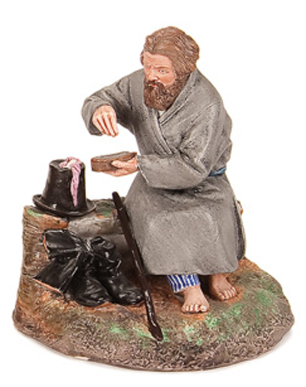A RUSSIAN BISQUE PORCELAIN FIGURE of a peasant salting his bread, 19th century, incised Popov mark. Height 5.5 inches (13.9 cm).
