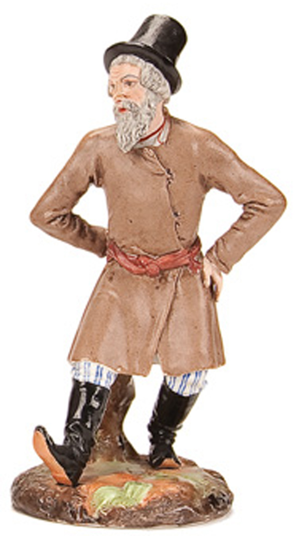 A RUSSIAN BISQUE PORCELAIN FIGURE of an elderly dancing peasant, circa 1850-1875. Incised mark of Popov and #22. Height 7.3 inches (18.5 cm).