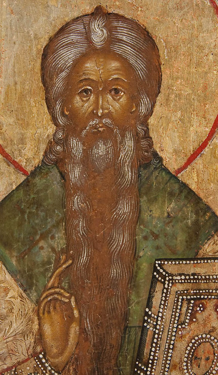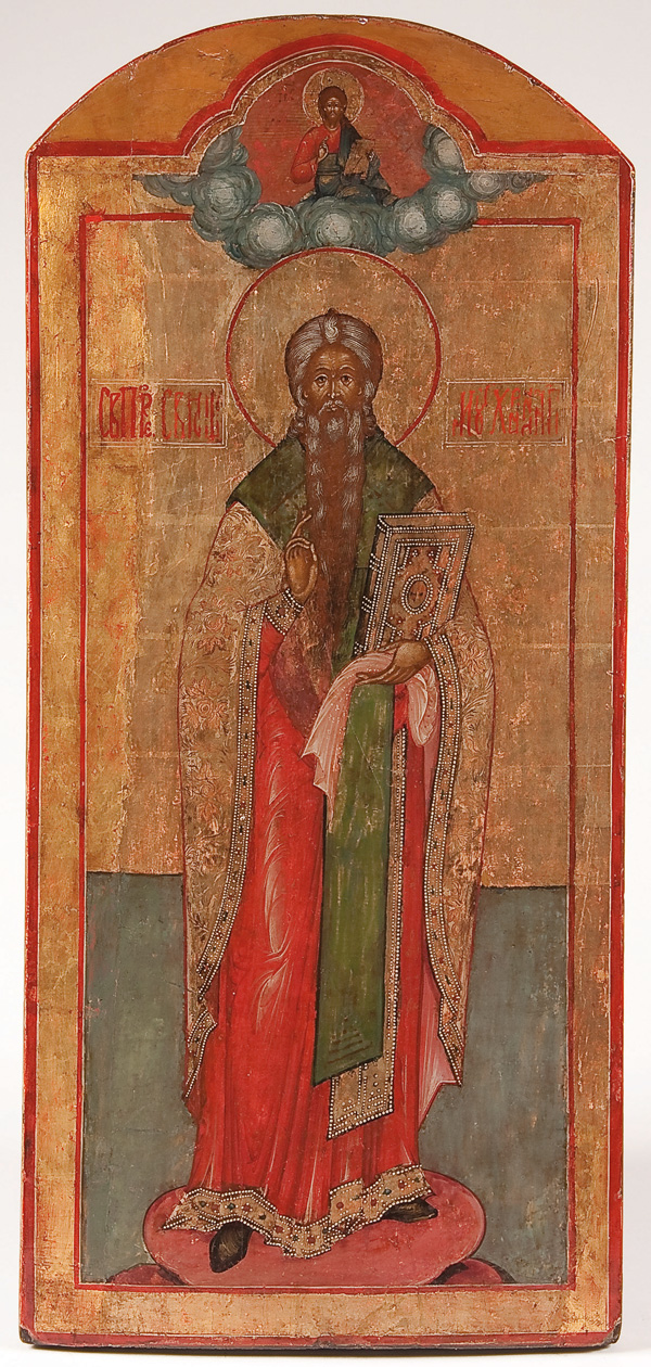 A LARGE RUSSIAN ICON OF THE VENERABLE ST. KHARLAMPIY, 19TH CENTURY. 23.75 inches x 11 inches (60.5 x 28 cm).