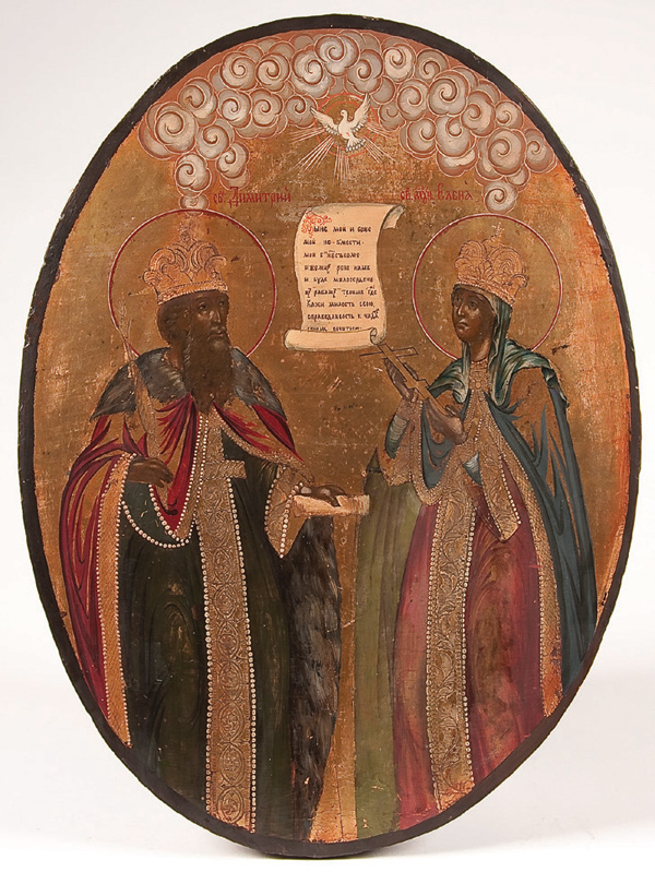 A RUSSIAN ICON OF ST. CONSTANTINE AND HELEN, 18TH CENTURY. 17 inches x 13 inches (43.5 x 33 cm).