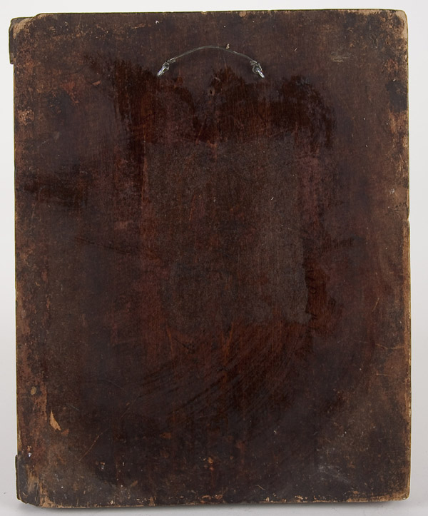 A RUSSIAN ICON OF ST. SAVVA, 20TH CENTURY. Savva kneels before a tree displaying a silver icon of the Sporuchnitsa Gryeshnuikh Mother of God. The head of Savva encircled with a mitred halo. In the background wild animals. Artist signed lower right. 12.25 inches x 9.75 inches (31 x 25 cm).