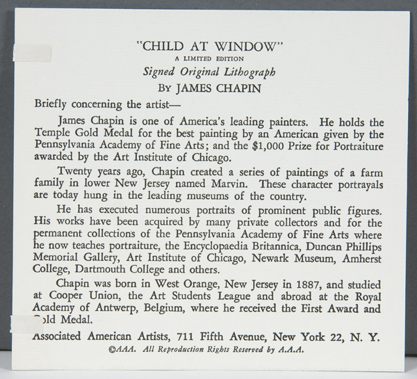 JAMES CHAPIN (American 1887-1975)
