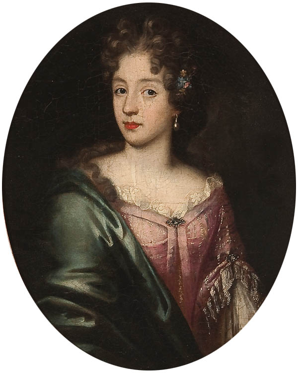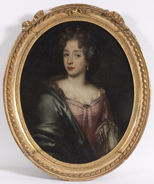 Portrait of a Young Woman with Pearl Earrings and Pink Dress with Lace