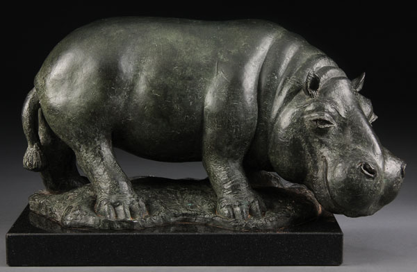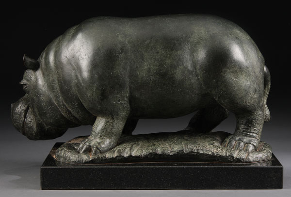 Height 10.5 inches, length 18.5 inches. Mounted on black marble base