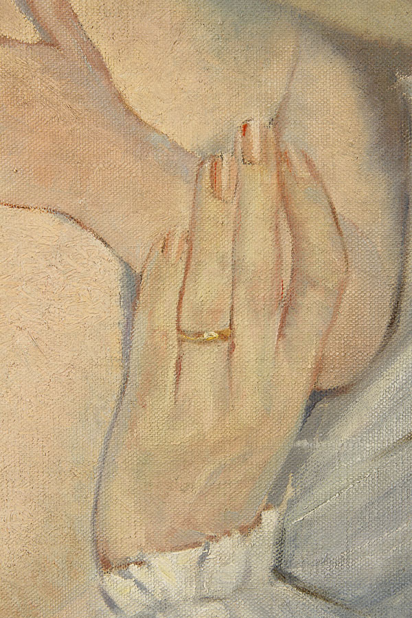 33.5 inches x 25.5 inches (85.1 x 64.8 cm). Contained in an ornate carved and gilt wood frame.