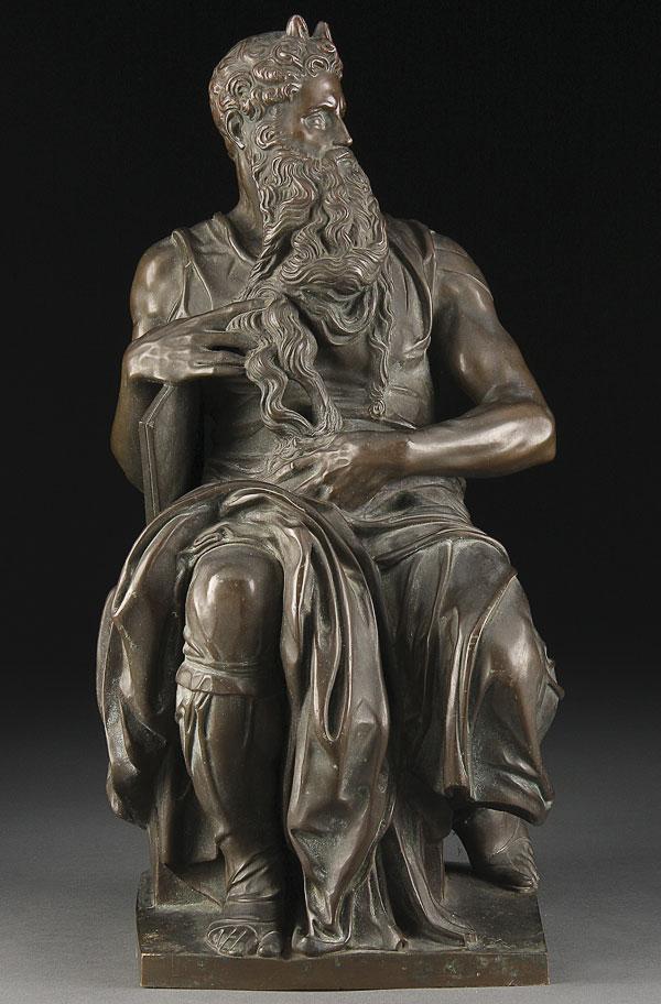 A BARBADIENNE BRONZE FIGURE OF MOSES, 19TH CENTURY, AFTER MICHELANGELO Height 17.25 inches (44 cm).