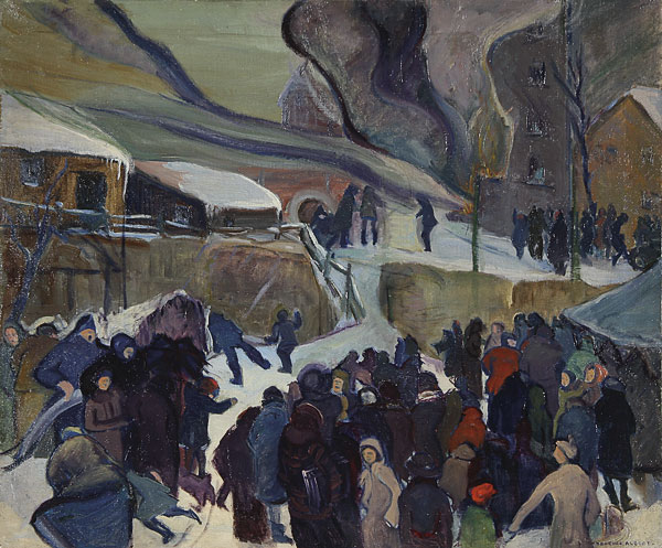 Winter City Neighborhood Scene of Building Fire-circa 1930