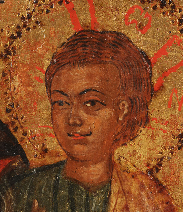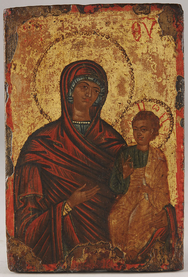 A GREEK ICON OF THE HODEGETRIA MOTHER OF GOD, AROUND 1700. 8.1 inches x 5.5 inches (20.6 x 14 cm)