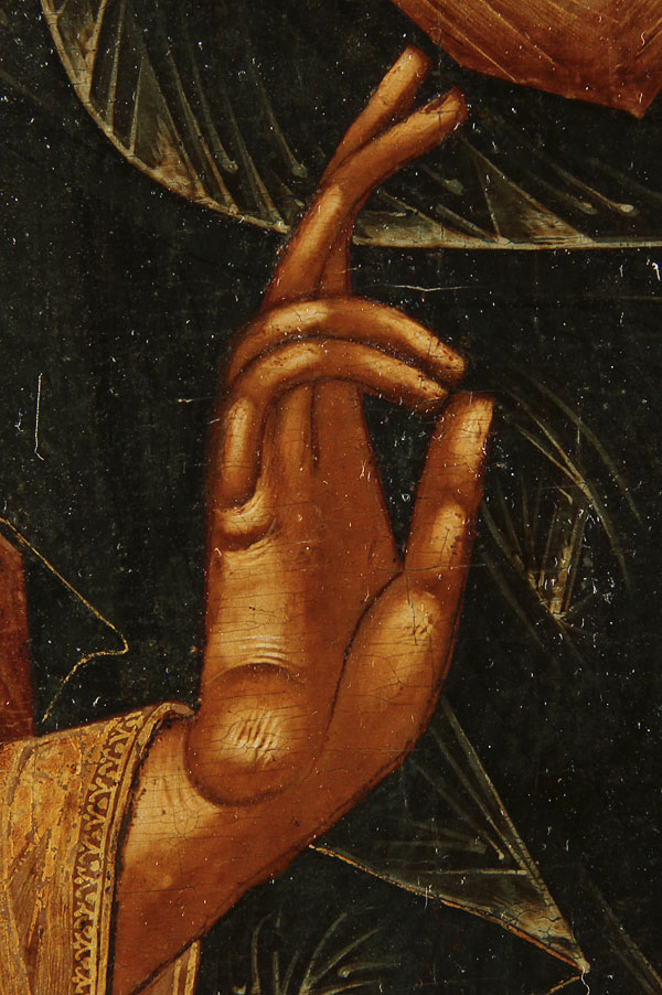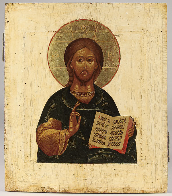 A RUSSIAN ICON OF THE LORD ALMIGHTY, 18TH CENTURY. Finely painted, Christ delivers a blessing and holds a book of Gospels to Matthew 11:28. Size 14 inches x 12.1 inches (35.5 x 30.7 cm).