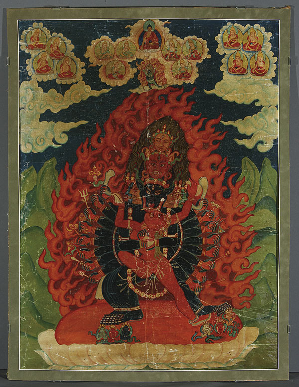 A SINO-TIBETAN THANGKA, PROBABLY EARLY 20TH CENTURY. Hand painted, oil on cloth. 36 inches x 27.5 inches (91.5 x 70 cm).