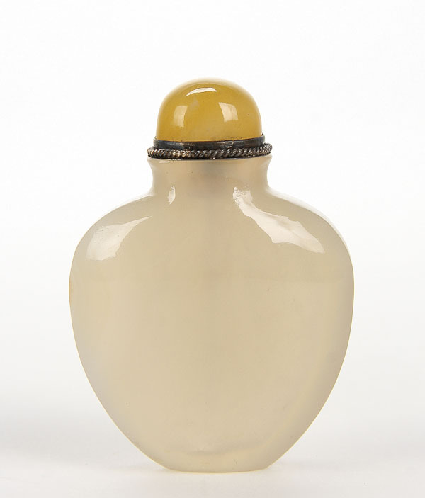 A CHINESE CARVED AGATE SNUFF BOTTLE, 19TH/20TH CENTURY. Of flattened avoid form and well hollowed with a carnelian stopper and gilt spoon. Height 2.5 inches (6.2 cm).