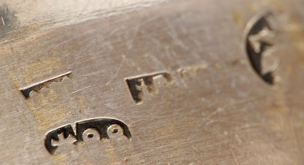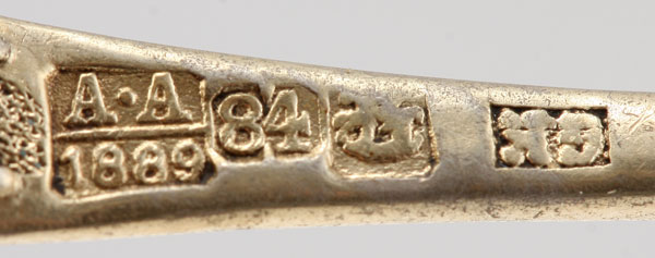 A GROUP OF FIVE RUSSIAN SILVER AND ENAMEL ITEMS, MOSCOW, CIRCA 1890-1908. Comprising a shaded and cloisonné enamel napkin ring, a cloisonné enameled footed salt, and a cloisonné demitasse and salt spoon. Various makers (Grachev, Semonova, Klingert). Napkin ring 1.5 inches (3.7 cm), spoon 4.25 inches (10.8 cm).