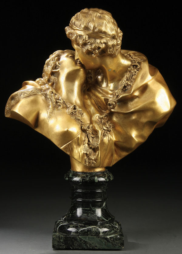 Gilt bronze, mounted on a carved marble plinth
