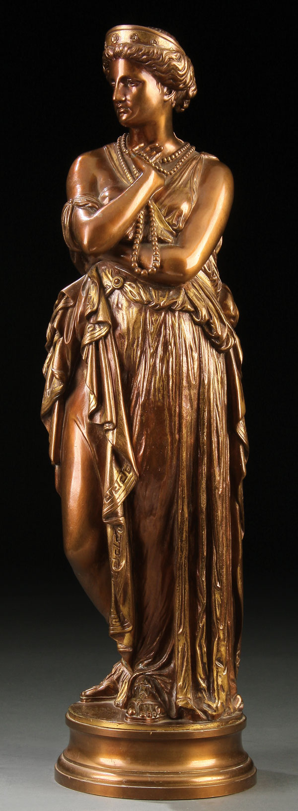 Bronze with traces of gilding over brown patina