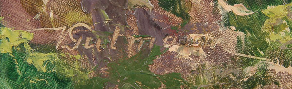 Signed lower right – verso with label inscribed in German “Kötschachtal bei Bad Gastein”